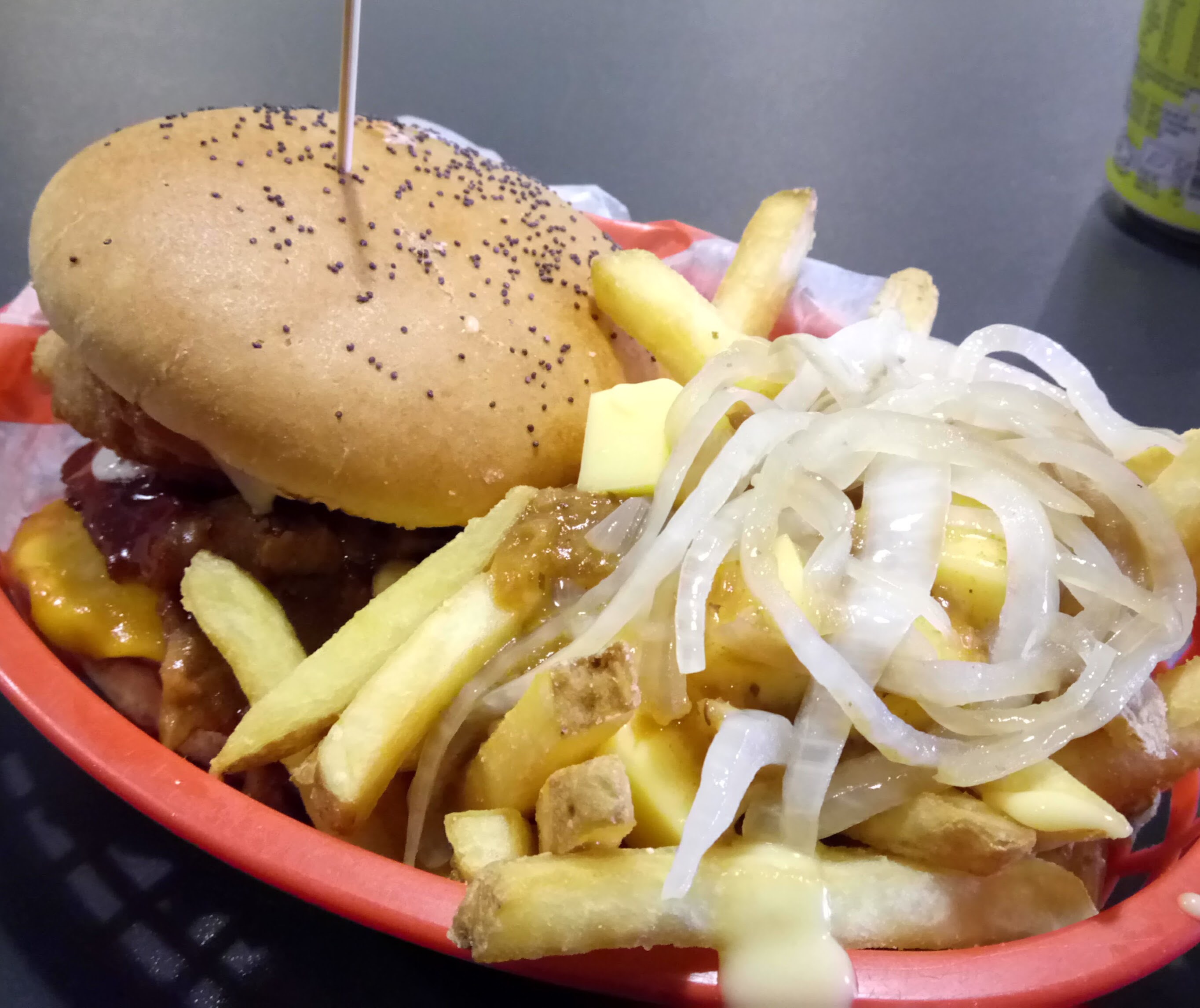 So then I’d tried three new to me places in Manchester. What next? Somewhere new for my last dinner out? Or I could just go back to V-Rev. This time I wanted to try a beefy burger. BBQ without the u. It had brisket, BBQ sauce and onion rings. It was great, though I think overall I prefer the fried chicken. This time I upgraded my fries though. I loaded them up with poutine. And we’re going to end the Manchester recap there because those fries are so brilliant I have no words.