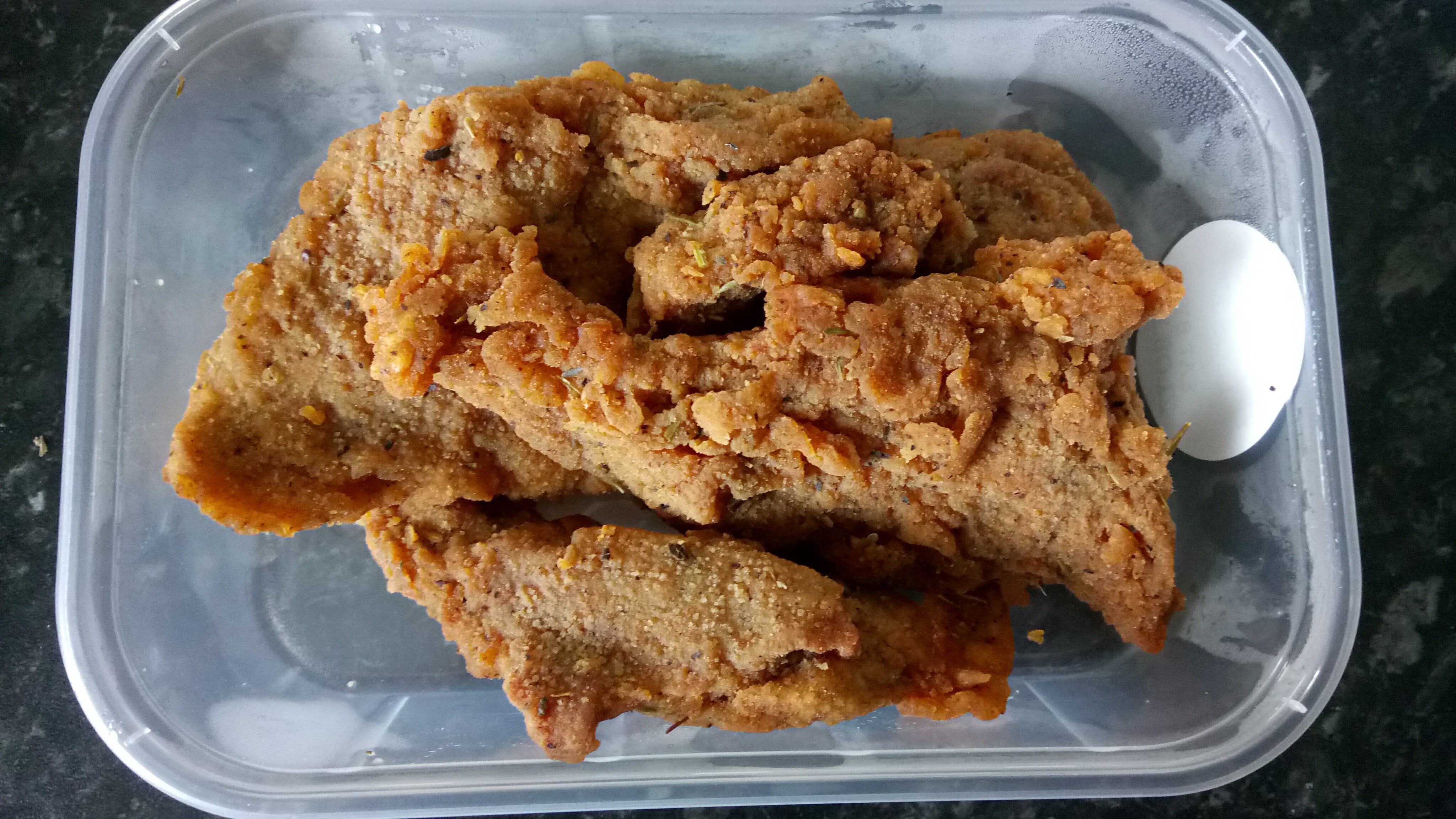Like it says on the tin plastic tub this seitan, Southern Fried. It certainly looks the part. Opening it up for the first time I was very impressed. I looks suspiciously like southern fried chicken. Smelt like southern fried chicken. Time for a taste test.