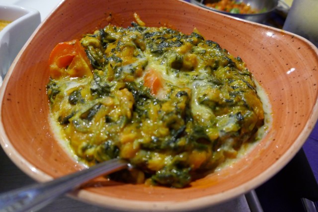 We also ordered the saag paneer which was good but not quite as fab as the Veg Massala. The cheese was a little overwhelming in the curry. We finished, once again, with the delicious coconut tart and left happy.