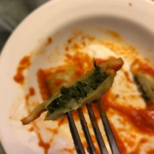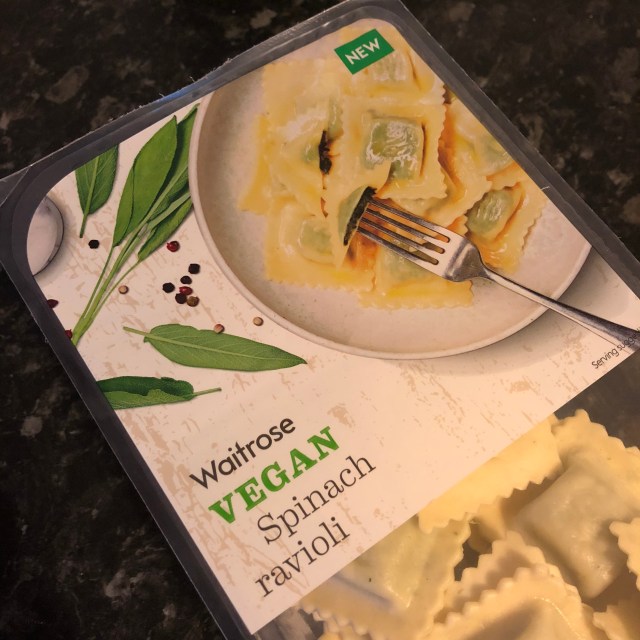 Waitrose are trying to up their vegan game. We approve because it’s one of the few supermarkets in walking distance and it makes us feel fancy to shop there. One of the few offerings we’ve managed to track down so far is the spinach ravioli.