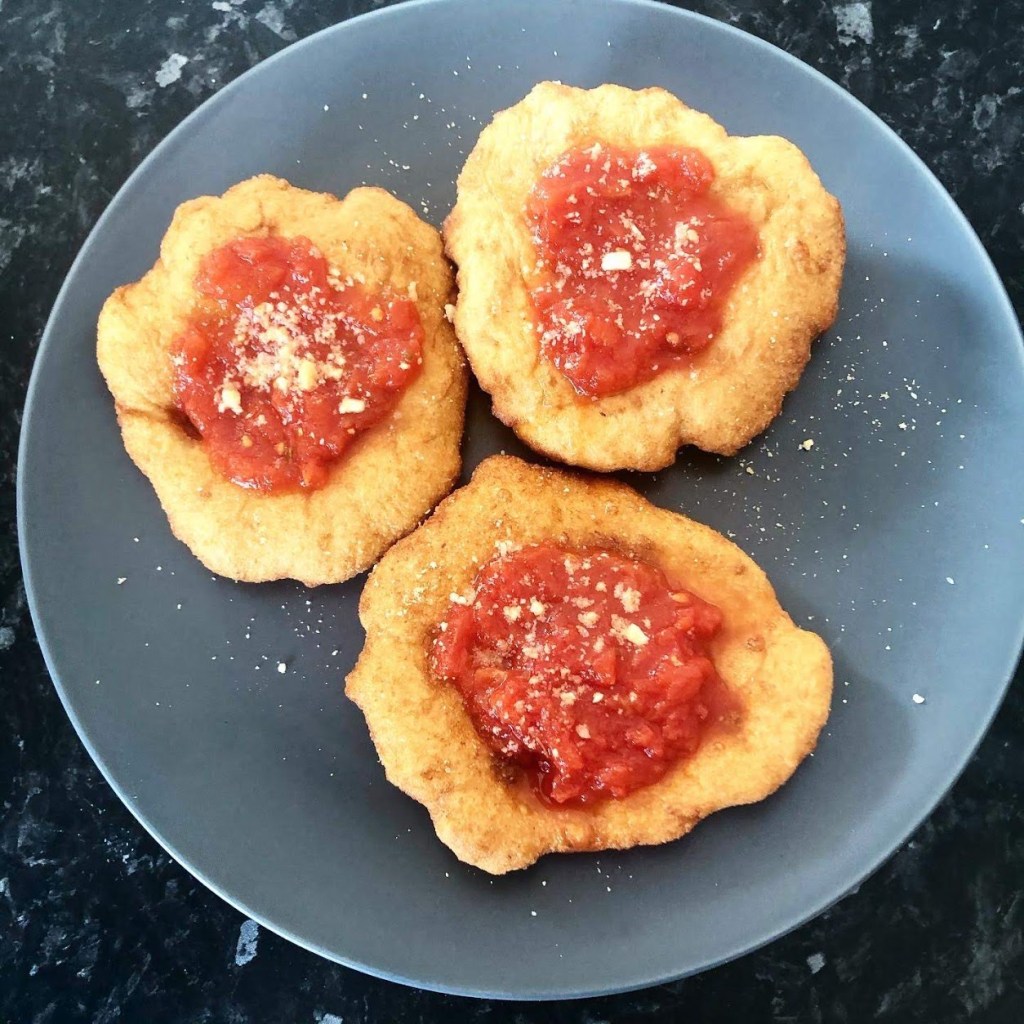 Keeping with the dough and tomato theme I decided to make these delicious little Montanara Pizzas. The dough is deep fried and then they are topped with the marinara and a little bit of Grated Nut Parmesan. The nut parmesan is much like any other nut-based parmesan which I’ve been eating for at least a decade. The pizza is like any other deep fried food but that makes it delicious so no complaints there.