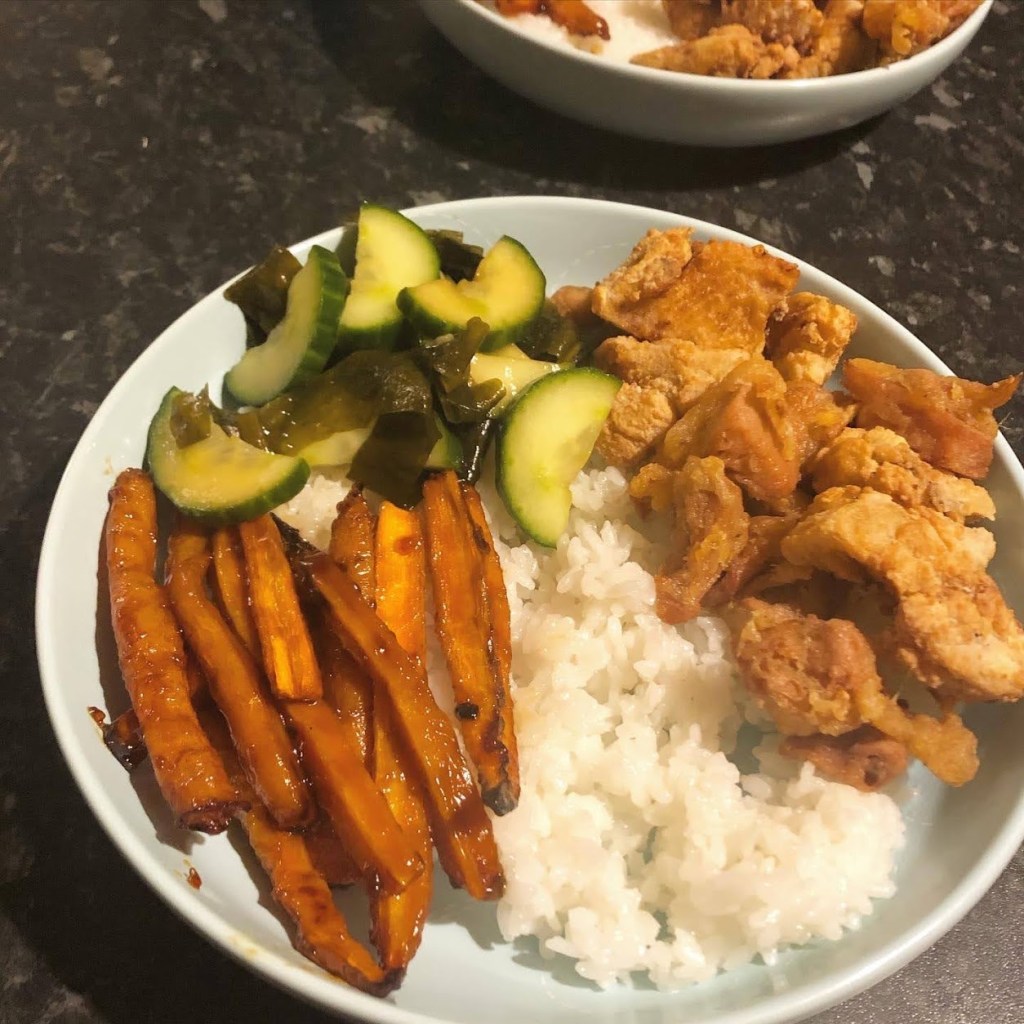 The night I made the carrots was a night where I just made whatever I had the ingredients for. Then I chucked it on some short grain rice to pretended it was a balanced meal. So there is also Cucumber And Wakame with Seasoned Vinegar (favourite!) and Jackfruit Karaage. The Jackfruit Karaage was interesting. The taste was spot-on but the jackfruit was kind of soggy. I usually make Karaage with chunks of unchicken breast from Miyoko Schinner’s Homemade Vegan Pantry and this hasn’t converted me to jackfruit.