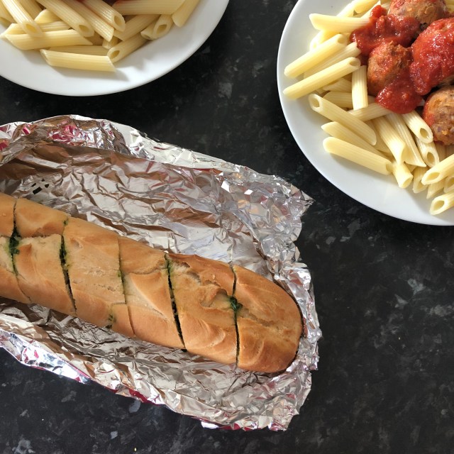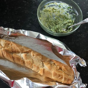 Wrap the baguette in foil and bake in the oven for twenty minutes.