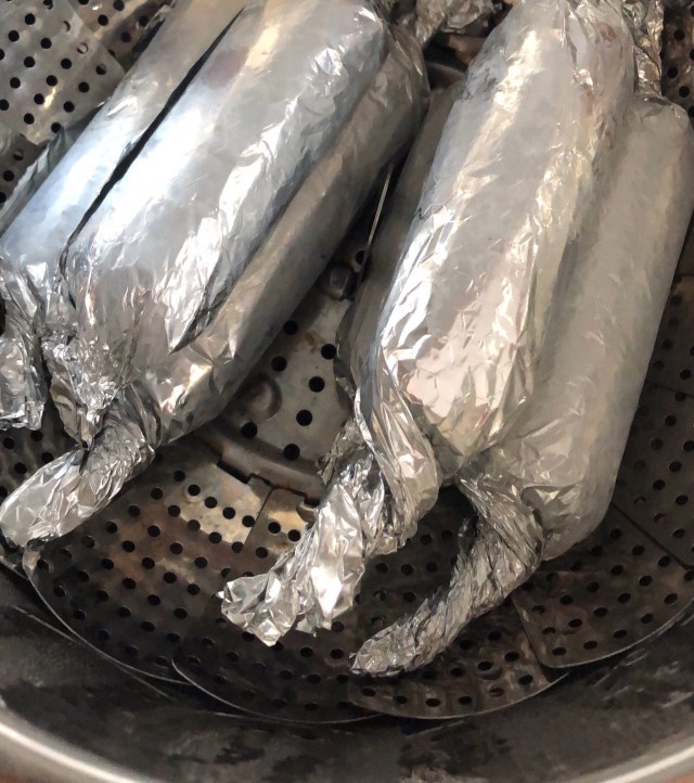 When I went to make the Italian Sausages from Skye Micheal Conroy’s Seitan And Beyond I’d already made a few recipients from the book. I’d even made a few different versions of hand rolled, steamed sausages. I thought it was going to be easy. Even after I read the introduction that said they where going to be extremely wet. I thought I knew what to expect.